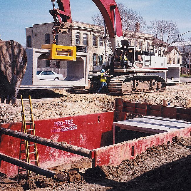Job site photos are strictly intended for general product information only and may not comply with all applicable safety standards. Always refer to manufacturers’ serialized specific tabulated data, O.S.H.A. 29 CFR 1926 Subpart P for excavations and all applicable safety standards prior to each use.