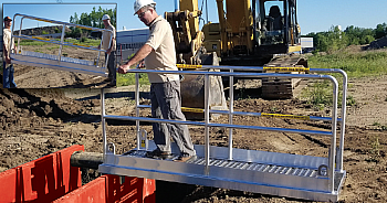 Lightweight 8′ and 12′ long Aluminum Manbridge with 9″ sidewall brackets, work on steel and aluminum trench shields and Slide Rail Panels.