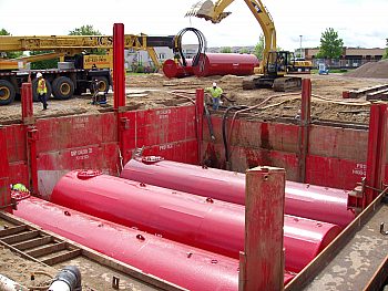 For extremely poor soil conditions, the Pro-Brace Hydraulic Frame system could be the answer for your tank installation needs. The Pro-Brace is a cost-saving system compared to traditional weld and cut systems. With the ability to use a variety of sheet pile, the Pro-Brace Hydraulic Frame System is a product that can be used on a wide range of projects.
